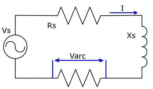 Voltage drop Varc across the equivalent arc resistance can be expressed as: